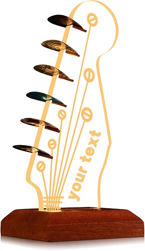 Elegant LED Guitar Pick Holder - Wood & Acrylic Display with USB Lighting