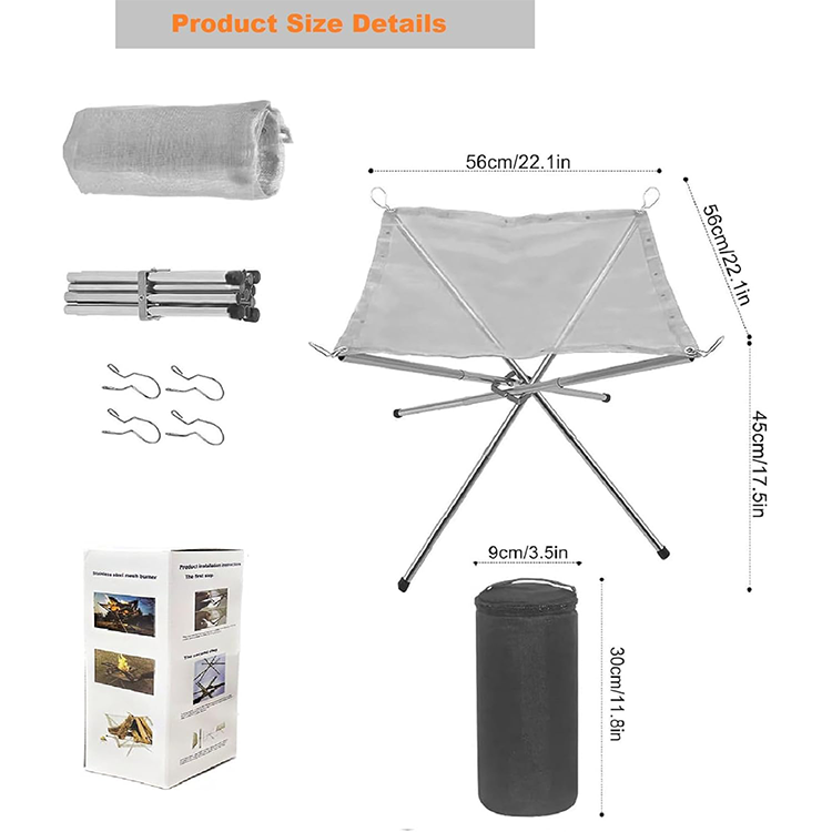Cool-down grate lets ash fall through; includes heat-resistant storage bag.